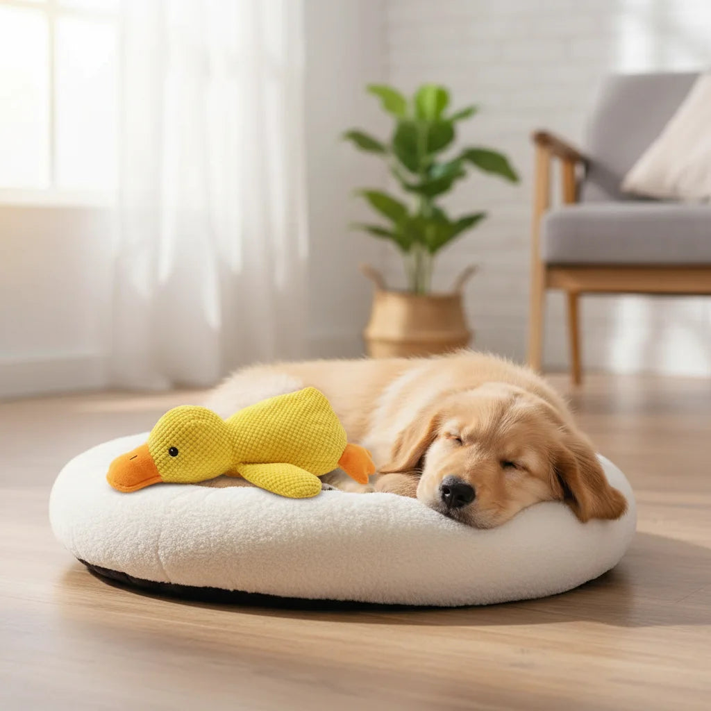 Watch your pup melt into calm with their new best friend! This super soft, squeaky duck isn't just a toy—it's instant comfort for anxious moments and endless joyful playtime.